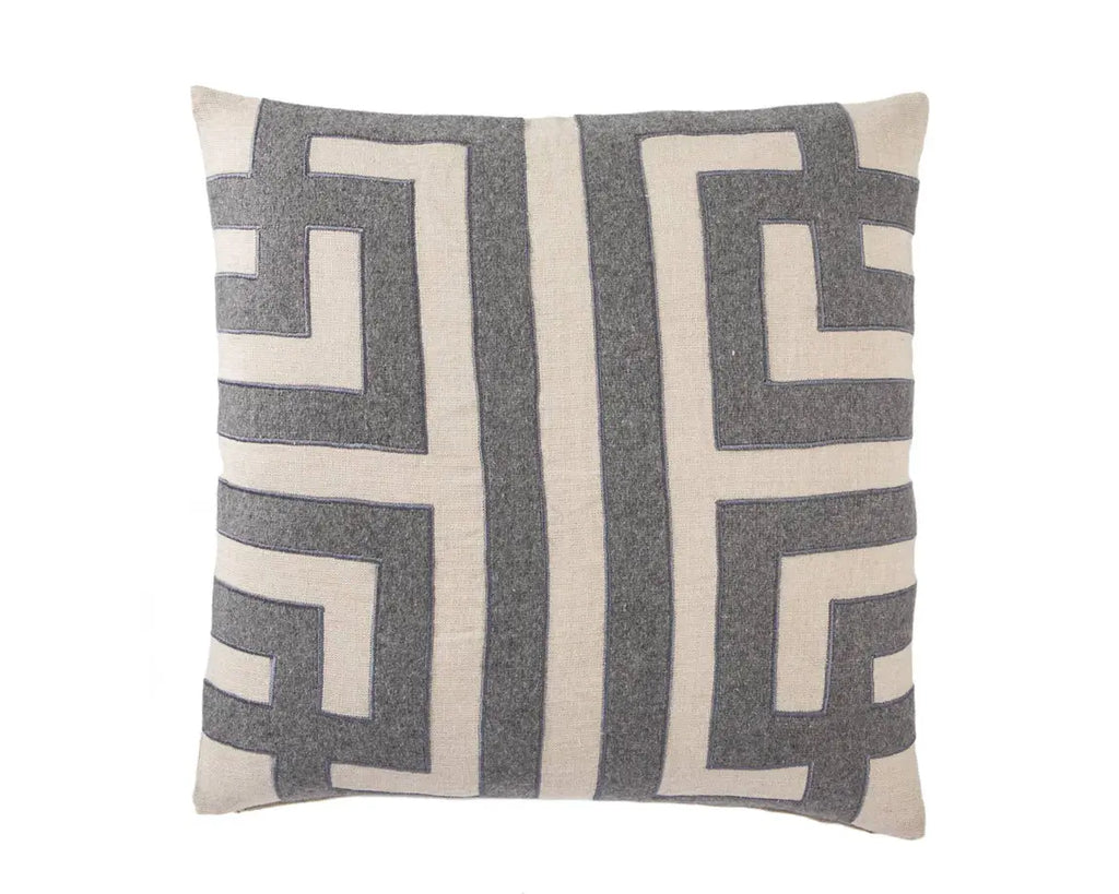 Add a touch of sophistication to your sofas and beds with our Cosmic Lanes throw pillow. Featuring an elegant Greek key pattern and embroidered linen cushion in shades of gray and beige, this pillow makes a bold statement and adds a touch of luxury to any room.