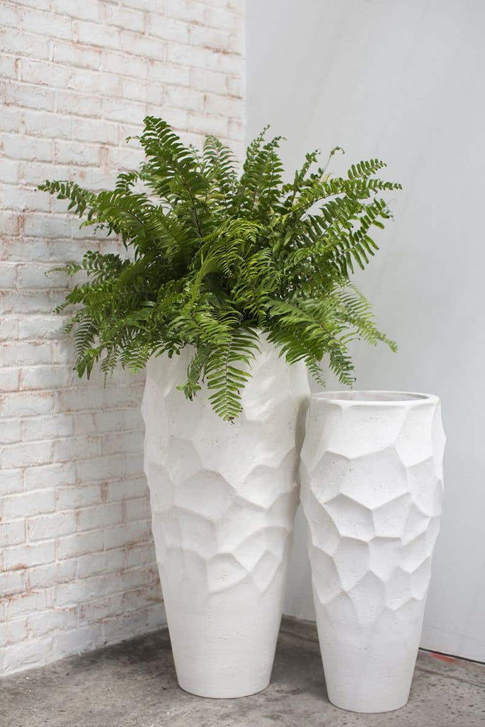 This elegant Geometric White Vase stands at 35.5" tall and features an alluring geometric design, crafted with precision and finesse. Its contemporary look adds a refined touch to any home, while its height creates an impressive statement, perfect for making an impression.
