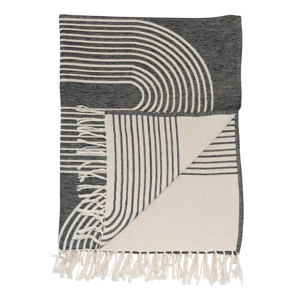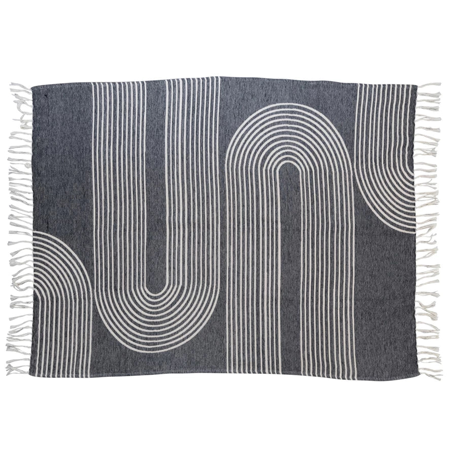 Experience luxury and comfort with this jacquard throw. The cotton weave with an arch design makes it perfect for any space while the fringe detailing adds a hint of warm elegance. Enjoy a cozy and inviting atmosphere in any room.